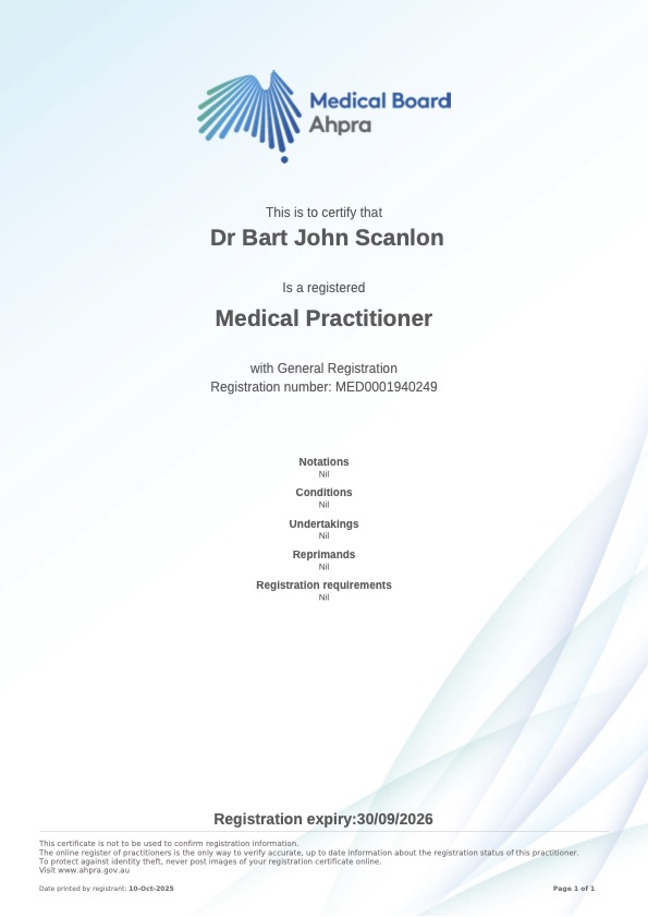 - Medical Board Certificate of Registration (Medical Practitioner)